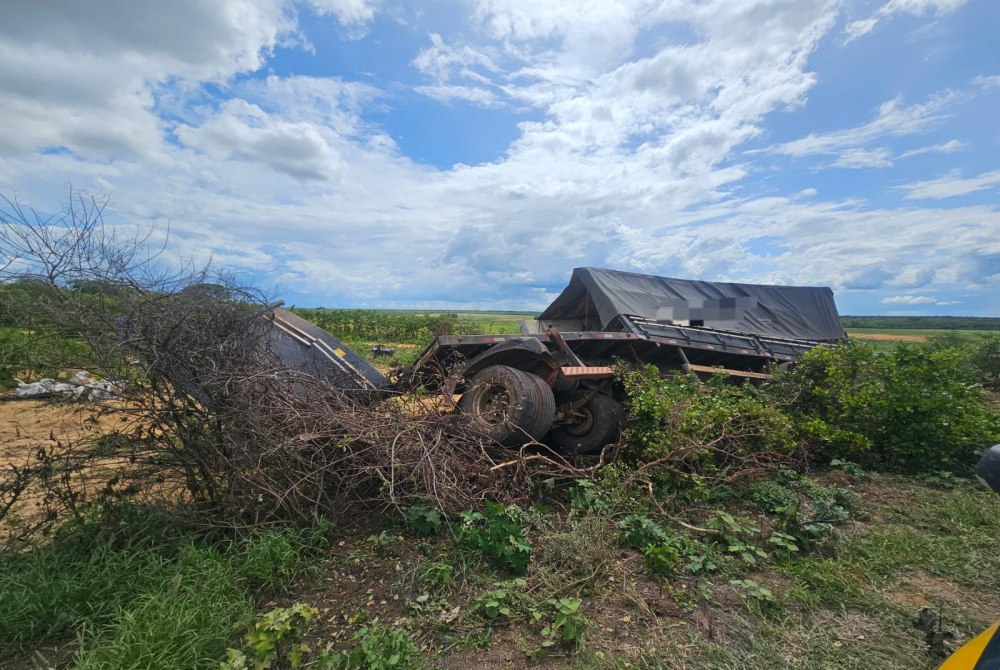 Informações da Polícia Rodoviária Federal, o motorista de um caminhão seguia pela rodovia quando o semirreboque se desprendeu do cavalo-trator (parte da frente do veículo) e acabou tombando fora da pista. O cavalo-trator permaneceu na posição normal e não chegou a tombar.