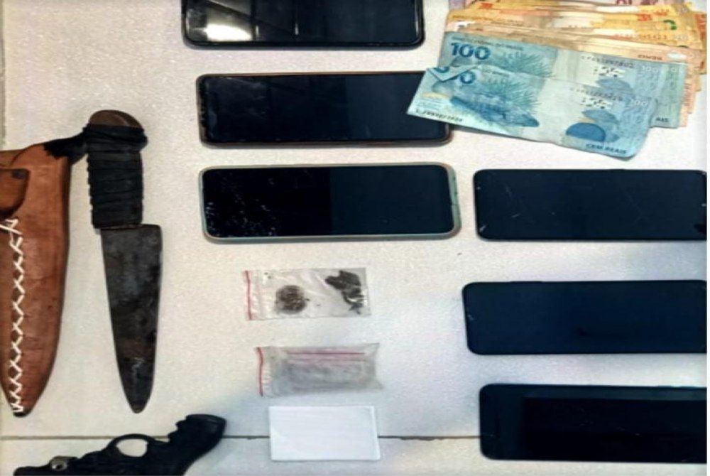 Ao chegar ao local, a equipe visualizou um adolescente saindo da casa suspeita. Durante a abordagem, foi encontrado com ele um papelote de substância análoga à maconha. Em seguida, os policiais entraram na residência, onde encontraram outros dois envolvidos, que relataram que o imóvel pertencia a um indivíduo conhecido como “Nego Júnior”, o qual conseguiu fugir pelos fundos ao perceber a presença da polícia.