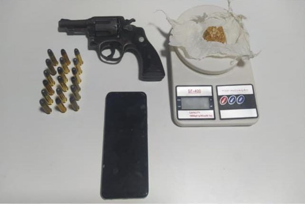O menor levou os policiais até o ponto onde havia escondido a arma usada no plano, sendo encontrado um revólver Taurus, modelo RT82/6, calibre .38, oxidado fosco, número de série 1175329, além de 13 munições intactas. Ele ainda informou que havia deixado 21 gramas de crack com um comparsa identificado pelas iniciais R.S.S.