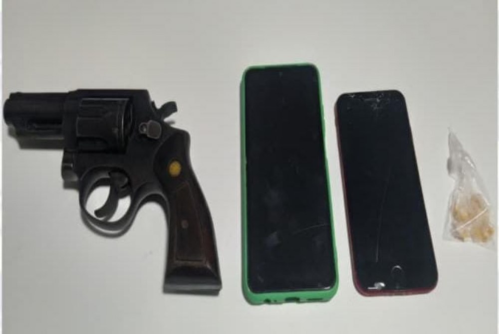 O indivíduo D.P.F. assumiu ser o proprietário da arma, alegando utilizá-la para defesa pessoal. Já com I.G.L.S., os militares encontraram 13 pedras de uma substância semelhante ao crack.