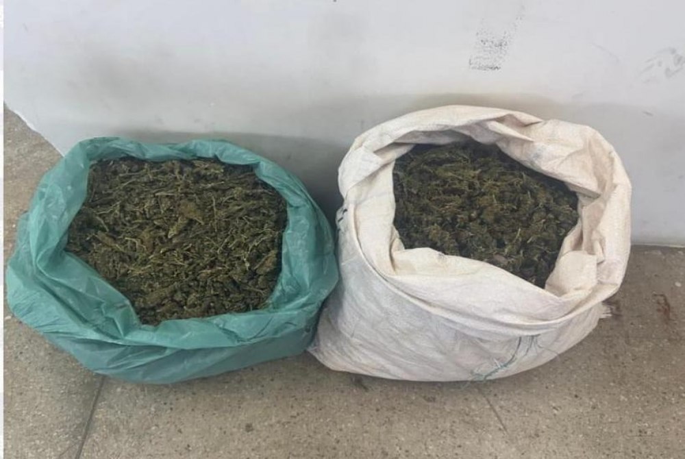 Duas sacolas contendo aproximadamente 12 quilos de maconha pronta para o consumo;