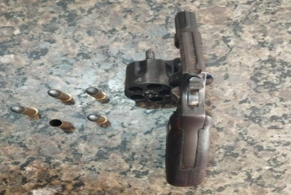 Por volta das 5h, o indivíduo foi localizado em via pública, nas proximidades do hospital local, próximo à casa da ex-companheira, portando na cintura um revólver Taurus, com quatro munições intactas e uma deflagrada. Durante a abordagem, ele ainda tentou fugir, mas foi contido e algemado.