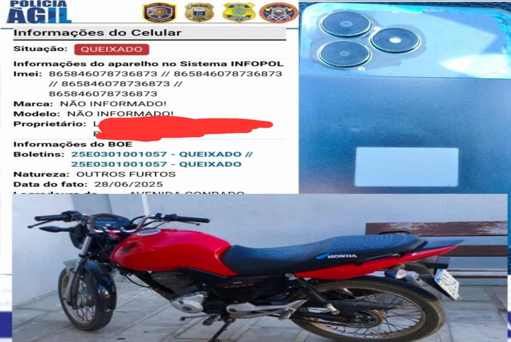 A equipe avistou um indivíduo em uma motocicleta saindo de um ponto conhecido pela venda de entorpecentes. Diante da suspeita, foi realizada abordagem e busca pessoal. Embora nenhum material ilícito tenha sido encontrado, os policiais constataram que o celular Xiaomi Note 50, cor cinza, que estava com o abordado, era oriundo de furto informação confirmada através do sistema Polícia Ágil, da SDS-PE.