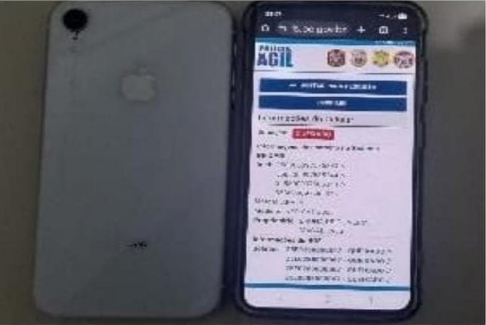 Durante a verificação do aparelho celular que ela portava, os militares consultaram o IMEI pelo sistema Polícia Ágil e constataram que o dispositivo um iPhone possuía restrição por queixa de roubo.