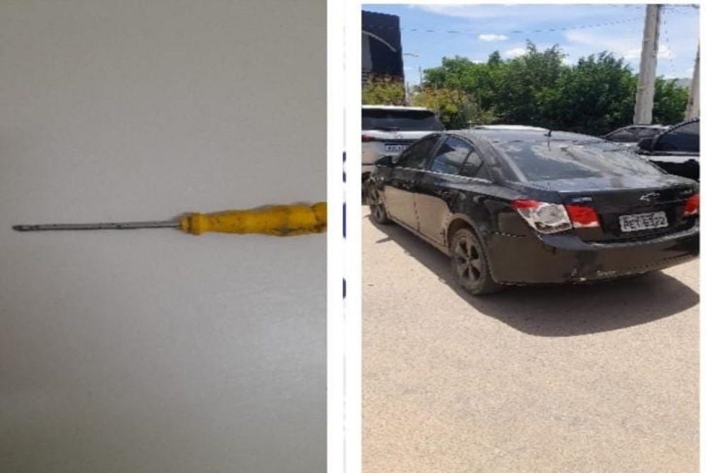 De acordo com as informações, a guarnição se deslocou até o local indicado e encontrou o imputado conduzindo um veículo GM Cruze, de placas PET-6322, sendo apontado por populares como o automóvel envolvido no acidente. Foi dada ordem de parada e, durante a abordagem, os policiais localizaram uma chave de fenda na cintura do condutor.