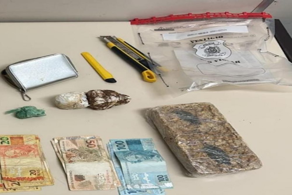 Em continuidade às buscas, os policiais localizaram outras porções do entorpecente enterradas no muro da residência, totalizando aproximadamente 1,210 kg de crack. Também foram apreendidos um caderno contendo a contabilidade do tráfico, três aparelhos celulares, a quantia de R$ 1.592,10 em dinheiro e um estilete.