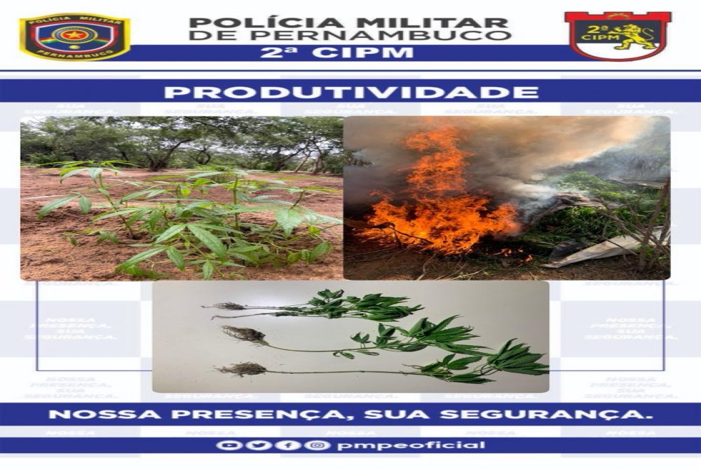 Todo o plantio foi erradicado e incinerado no local. Amostras do material apreendido foram encaminhadas à Delegacia de Polícia Civil de Orocó para adoção das medidas cabíveis.