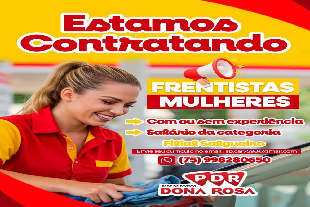 A Rede de Postos – Dona Rosa anunciou a abertura de vagas para frentistas mulheres na filial de Salgueiro, no Sertão de Pernambuco.