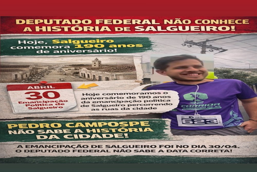 Salgueiro celebra 190 anos de fundação nesta data, enquanto a emancipação política do município ocorreu oficialmente no dia 30 de abril, conforme registros históricos. O equívoco foi rapidamente percebido por moradores e lideranças locais, que apontaram desconhecimento da história da cidade por parte do deputado.