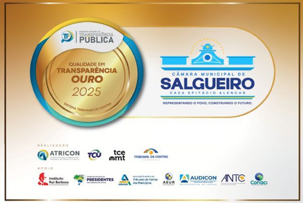 A Câmara de Vereadores de Salgueiro, sob a presidência de Léo Parente, foi reconhecida oficialmente pelo Tribunal de Contas do Estado de Pernambuco (TCE-PE) com o Selo de Qualidade de Transparência Pública tipo “Ouro”. A certificação foi entregue como resultado do Levantamento Nacional de Transparência Pública 2025, destacando as boas práticas de gestão e transparência da Câmara.